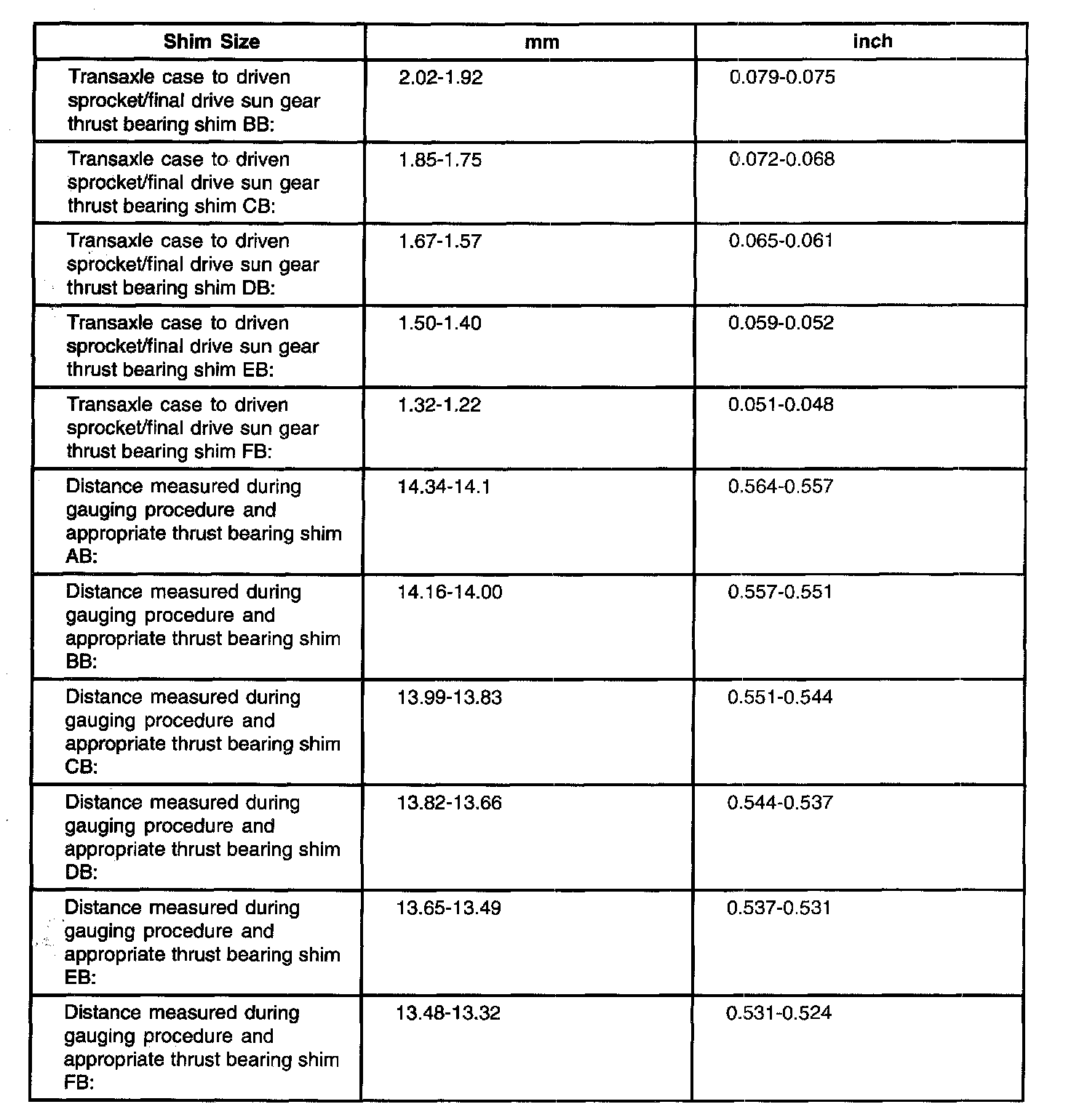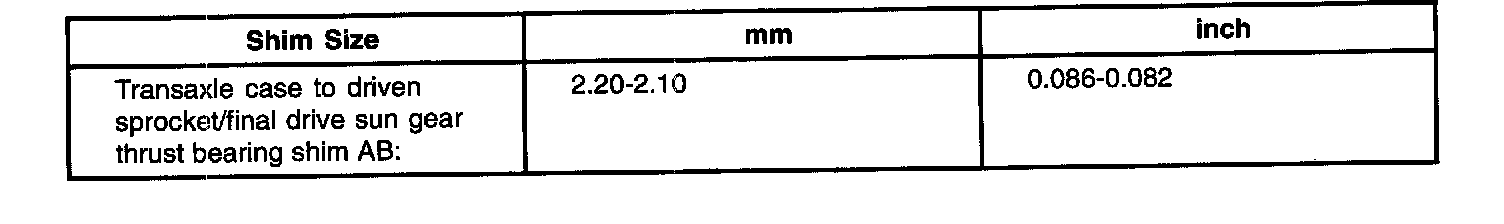 2. Driven sprocket thrust bearing shims.