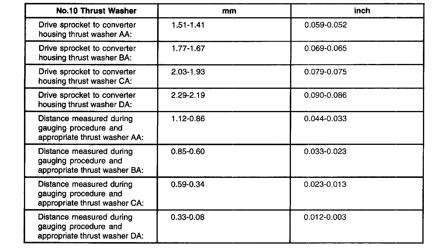 47. Select No. 10 thrust washer from the drive sprocket thrust washer chart.
