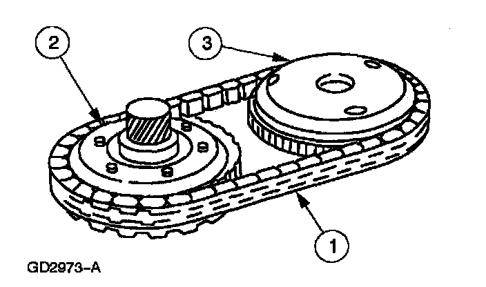 1. Drive chain (copper colored link facing upward).