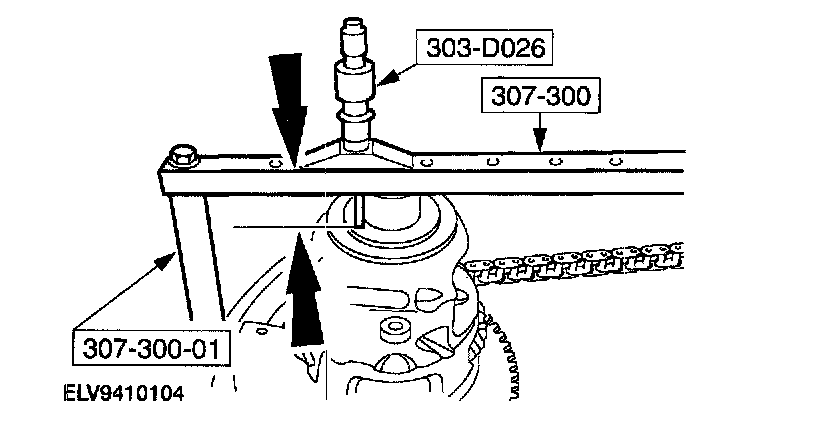 1. Install pin to hold special tool in place.