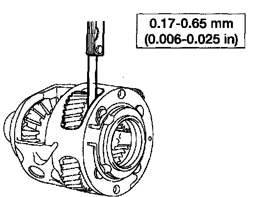 2. Measure the final drive planet gear end play with a feeler gauge.