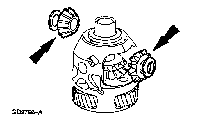 1. Install the differential side gears and thrust washers.