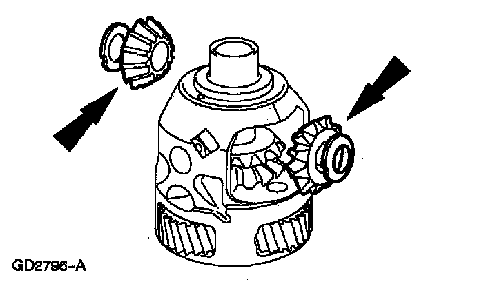 1. Turn the differential pinion gears 90 degrees and remove.