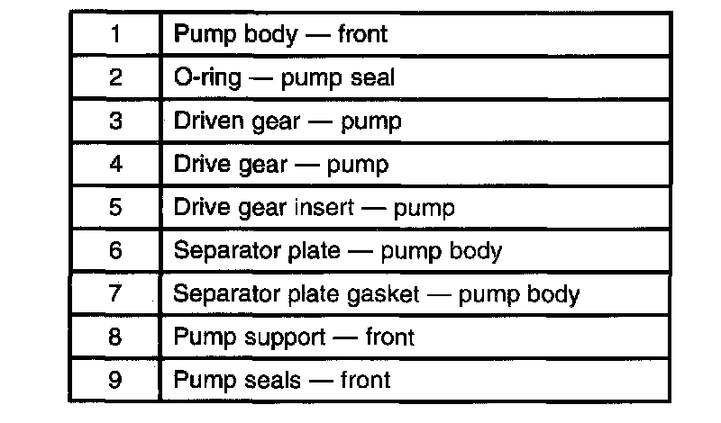 8. Inspect the pump support apply circuit passages and lubrication passages. 1. Rear lube (from cooler TC circuit)