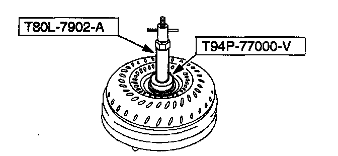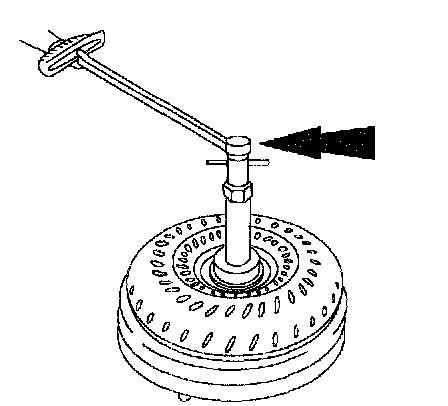 1. Install special tools into the turbine splines in the torque converter.
