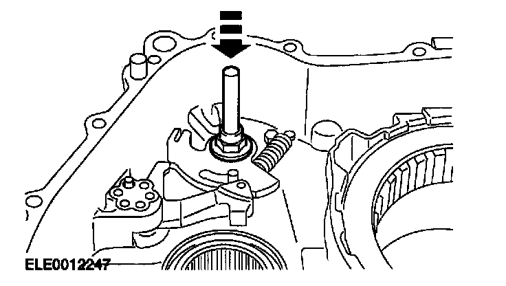Caution: Do not allow the manual shaft retaining pin to contact the transaxle case.