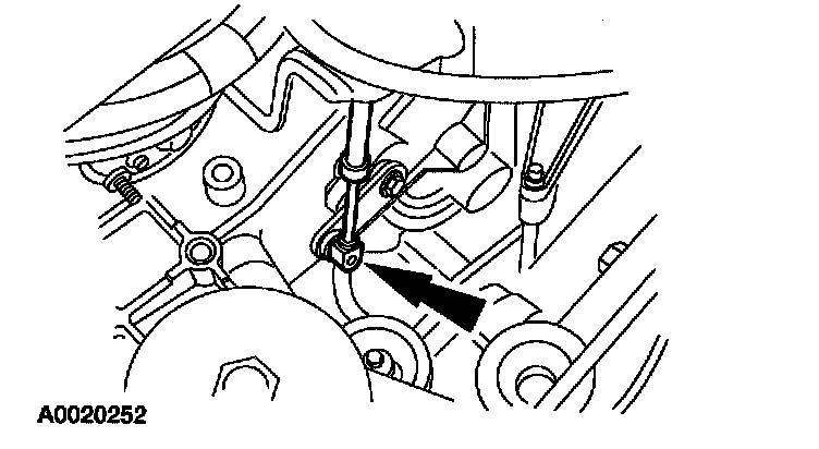 5. Loosen the nut on the ball stud for the manual valve detent lever actuating rod assembly.