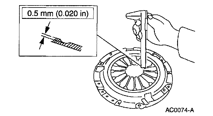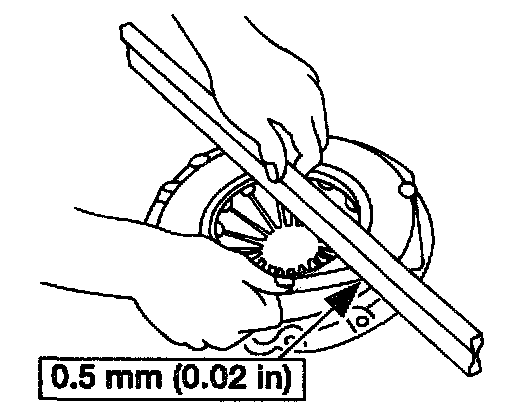 2. Measure the flatness of the clutch pressure plate surface with a straightedge and a feeler gauge.