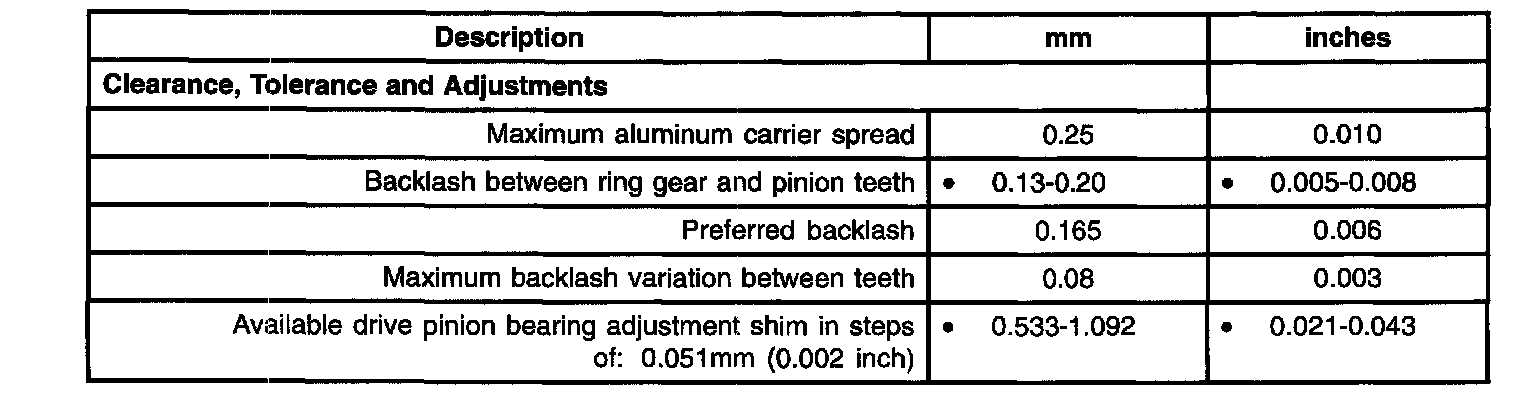 Backlash between ring gear and pinion teeth 0.13-0.20 mm (0.005-0.008 inch)