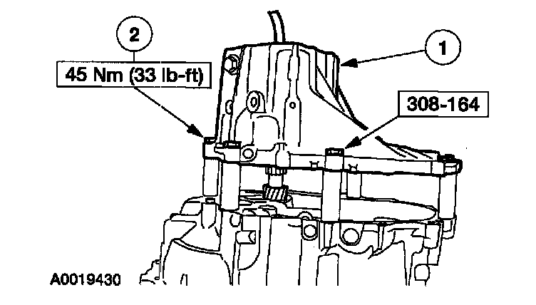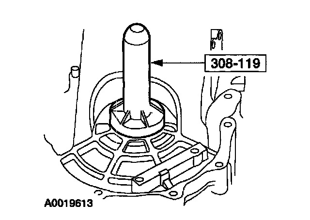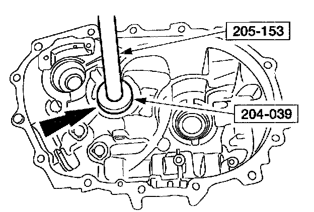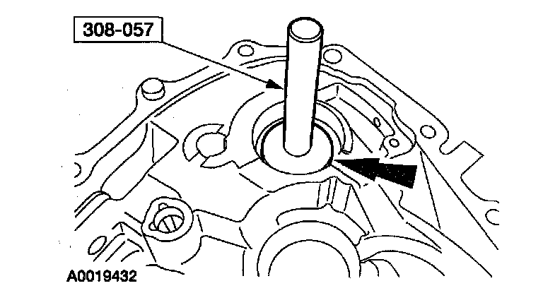 31. Using the special tools, install the differential bearing cup into the flywheel housing.