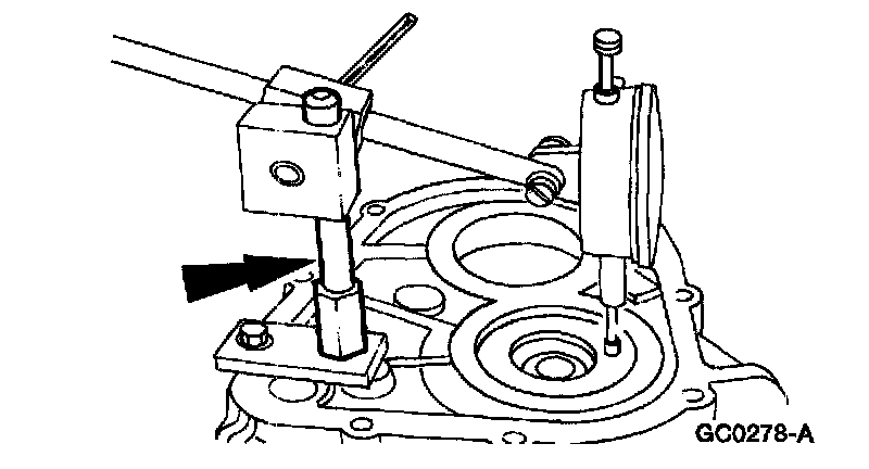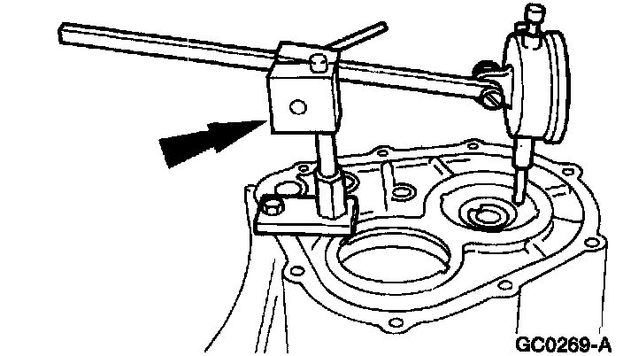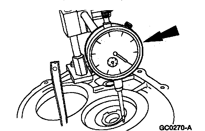 7. Mount a dial indicator to the transaxle case.