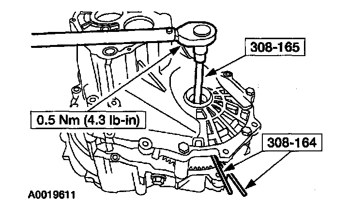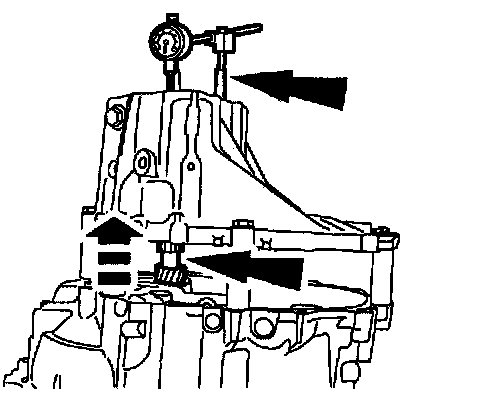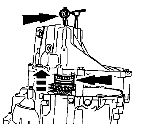 AssemblyCaution: Whenever the transaxle has been disassembled, the bearing preload must be adjusted. The input shaft, output shaft and differential bearing preread can be adjusted by selecting shims to insert between the bearing races and the case on the case side.
