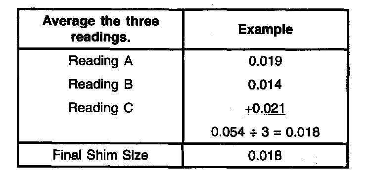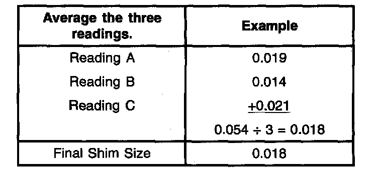 11. Repeat the previous step to obtain three readings within 0.10 mm (0.004 inch) of each other. Use the formula below to select the correct shim size.