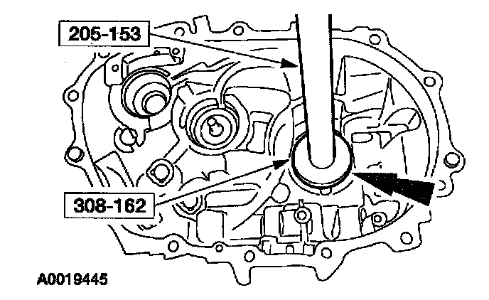 44. Using the special tools, install the differential bearing cup into the transaxle case.