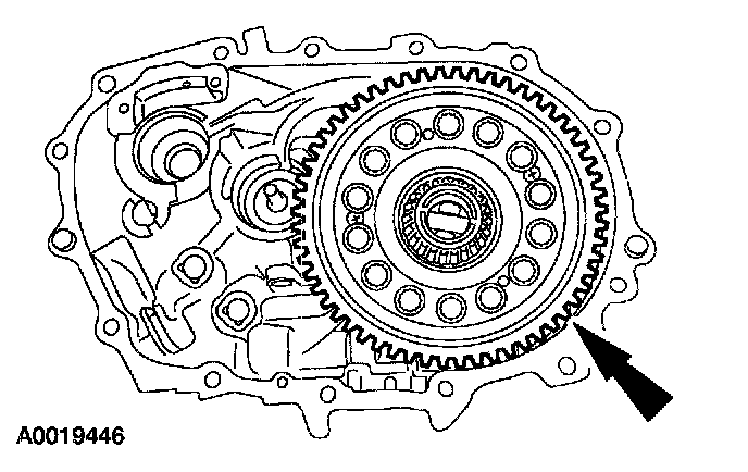 42. Remove the transaxle case, special tools, bearing cup, and differential.