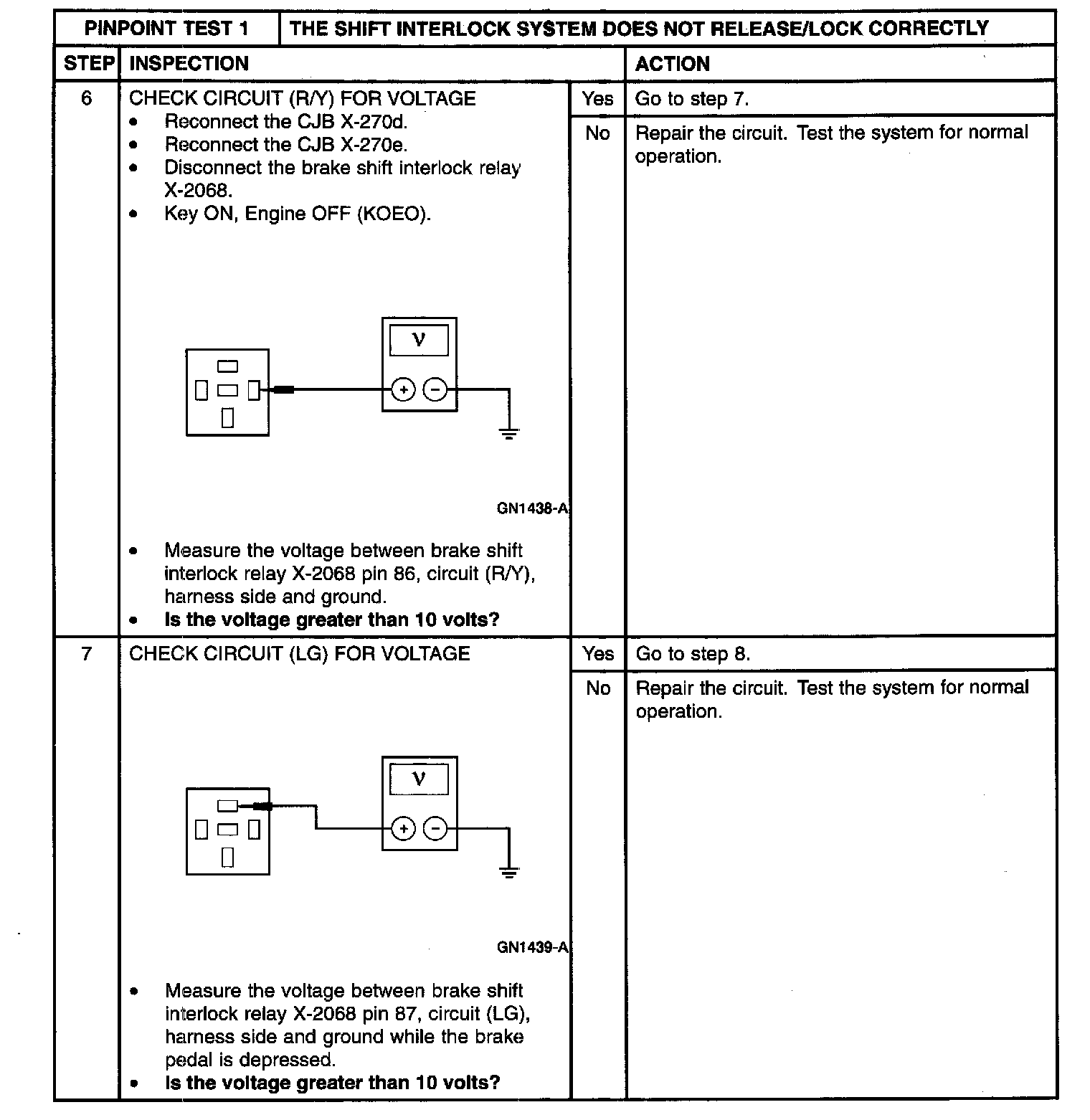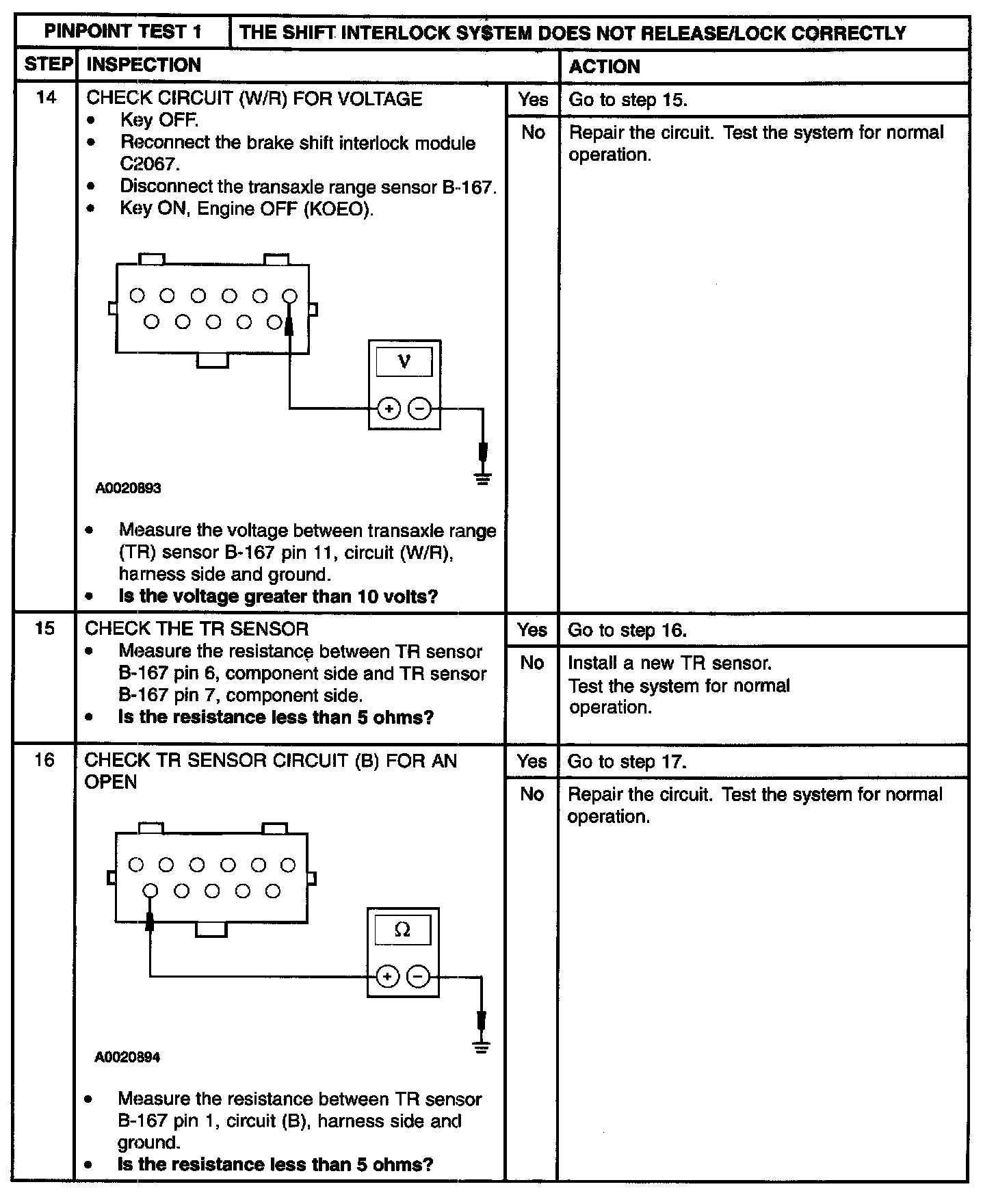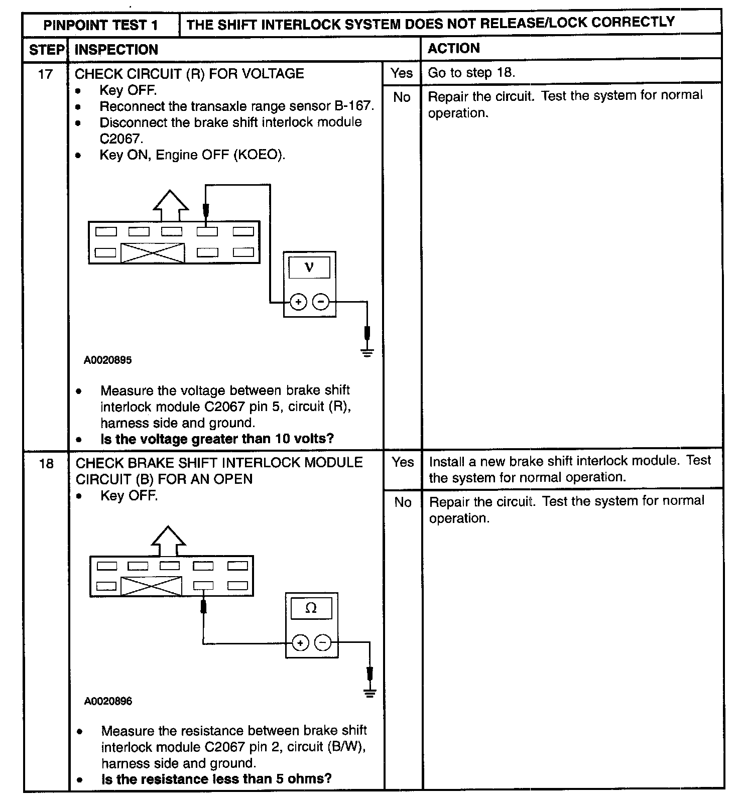 PINPOINT TEST 1: THE SHIFT INTERLOCK SYSTEM DOES NOT RELEASE/LOCK CORRECTLY