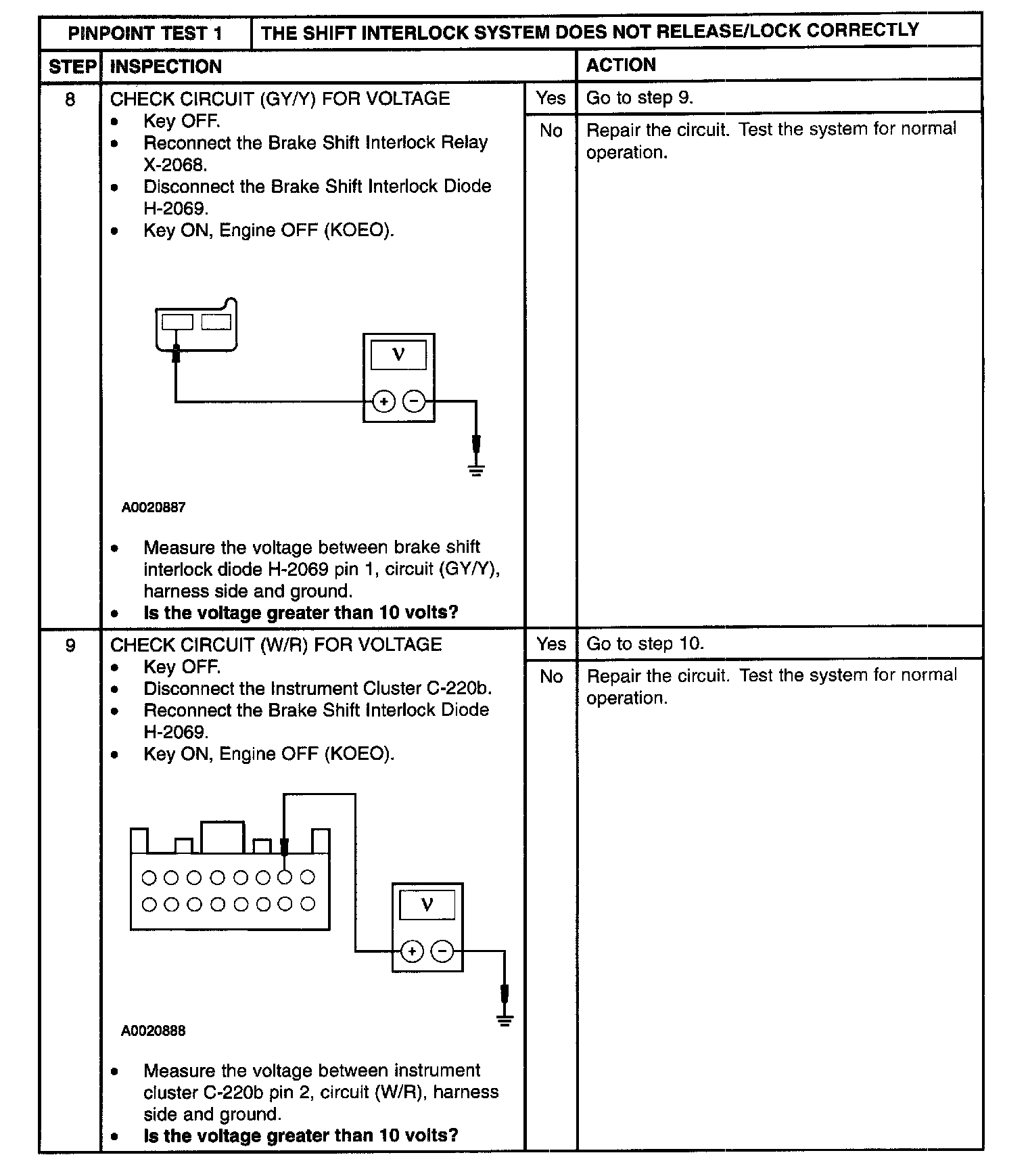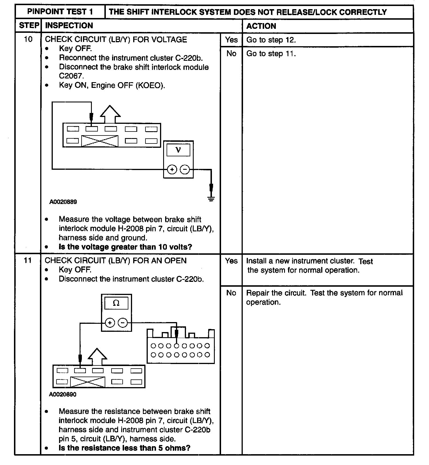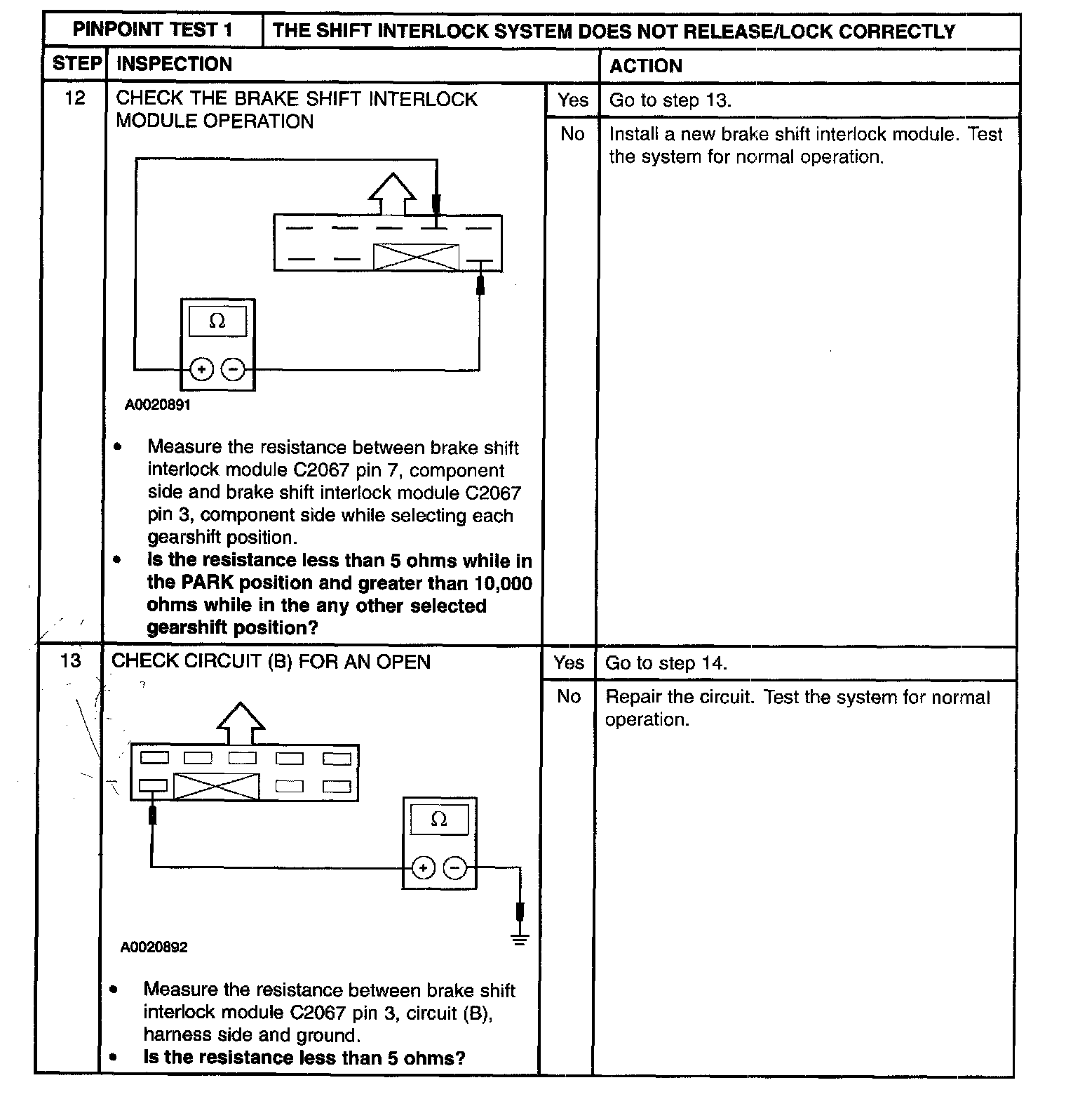Pinpoint Test 1:Shift Interlock System Does Not Release