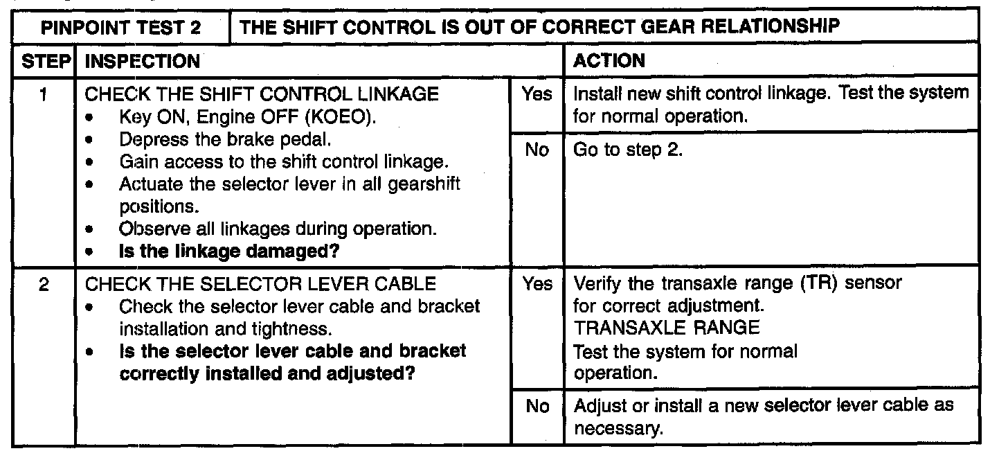Pinpoint Test 2: Shift Control Is Out of Correct range