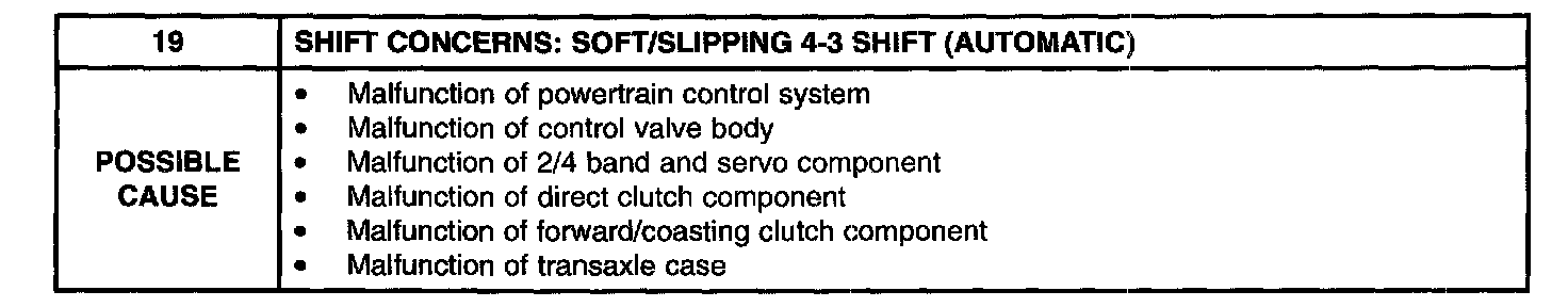 PINPOINT TEST 19: SHIFT CONCERNS: SOFT/SLIPPING 4-3 SHIFT (AUTOMATIC)