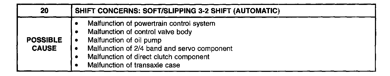 PINPOINT TEST 20: SHIFT CONCERNS SOFT/SLIPPING 3-2 SHIFT (AUTOMATIC)