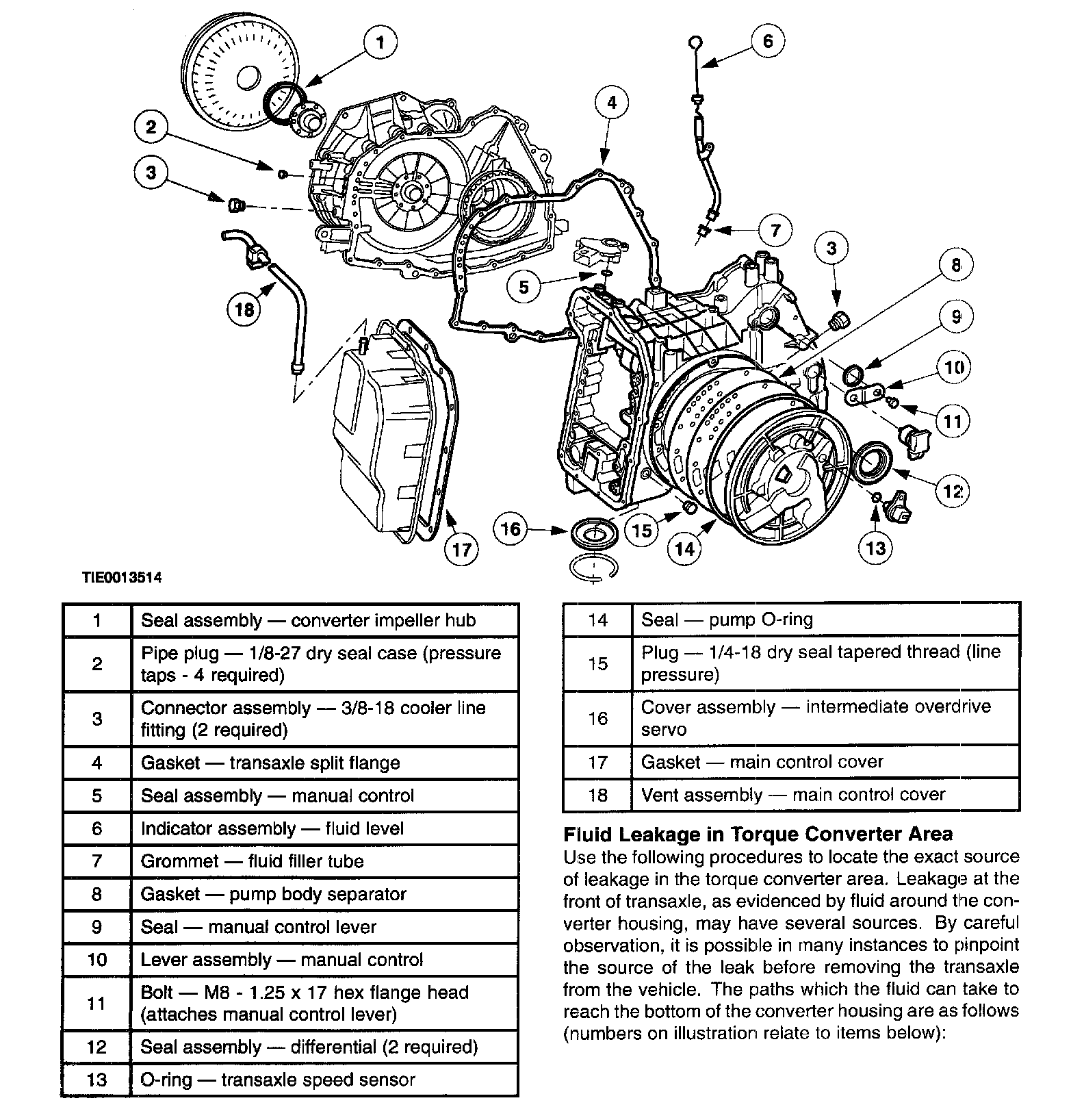 The CD4E transaxle has the following parts to prevent external fluid leakages: