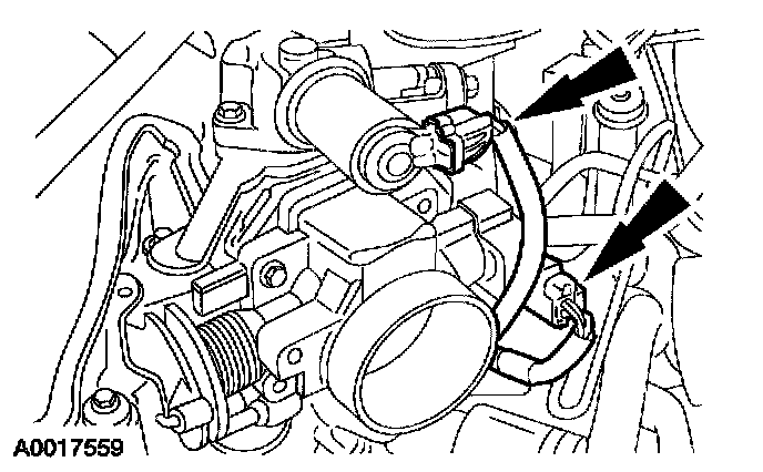 4. Disconnect the throttle position (TP) sensor and idle air control (IAC) electrical connectors.