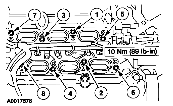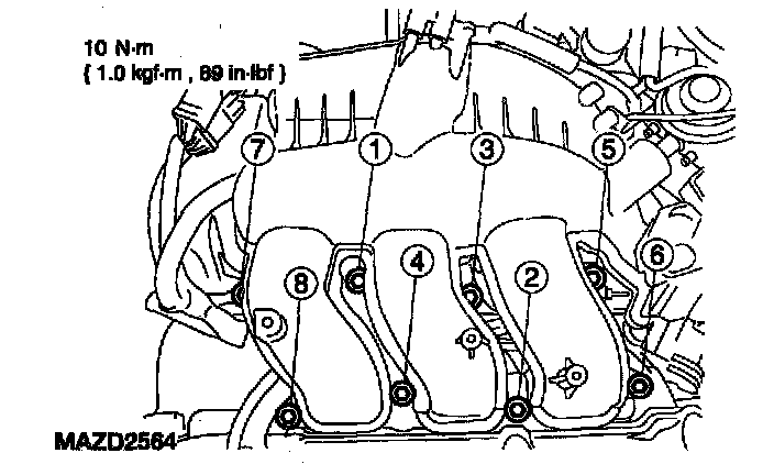 2. Position the upper intake manifold and tighten the bolts in the sequence shown.