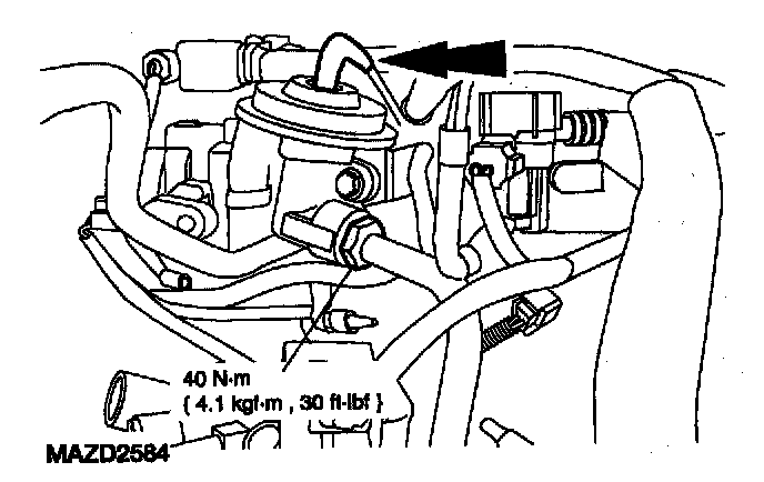 10. Install the EGR valve vacuum hose and EGR tube nut.