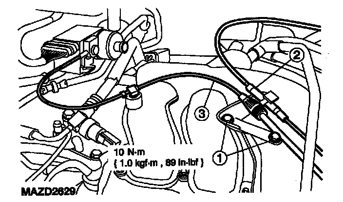 1. Install the throttle cable bracket bolts.