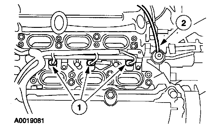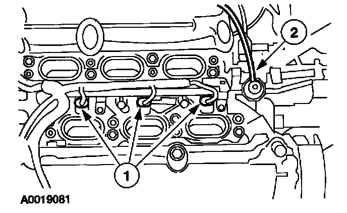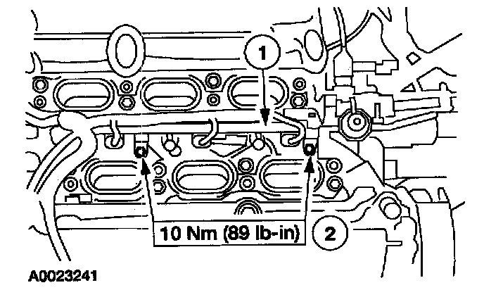 1. Position the fuel rail (1).