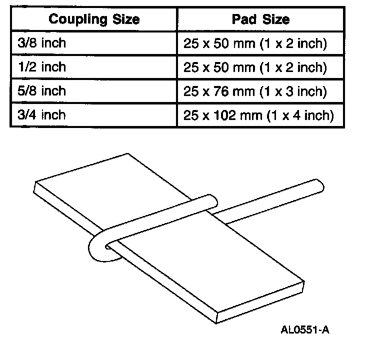 2. Cut an abrasive pad from maroon colored 3M (TM) Scotch Brite (R) with the dimensions corresponding to the coupling size.