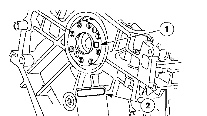 44. Install the crankshaft damper bolt and rotate the crankshaft keyway to the 3 o'clock position.