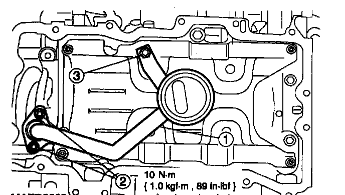20. Position the oil pump and install the bolts in the indicated sequence.