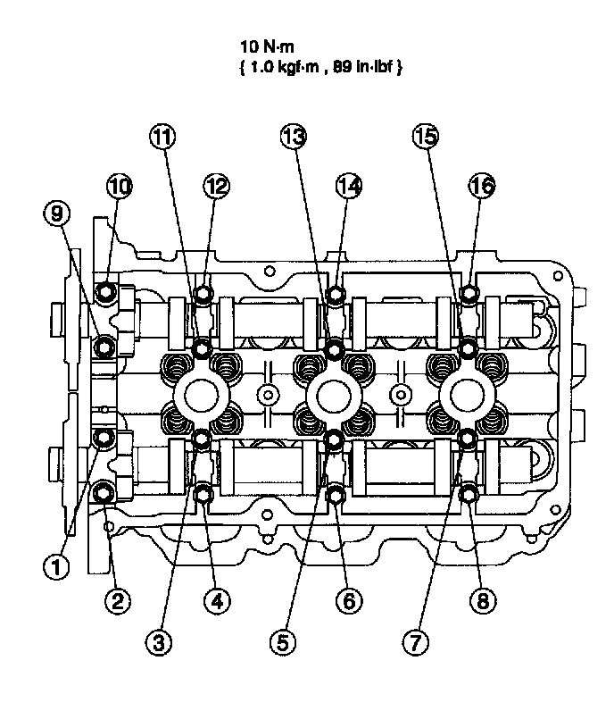 ^ Stage 1 Tighten fasteners 1 - 8 to 25 Nm (25 kgf-m, 18 ft. lbs.)