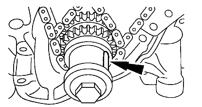 ^ Align the marks on the timing chain with the marks on the camshaft and crankshaft sprockets.