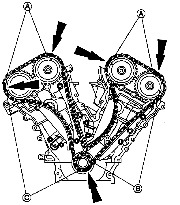 40. If timing marks on the timing chains are not evident, use a permanent-type marker to mark on the LH and RH timing chains.
