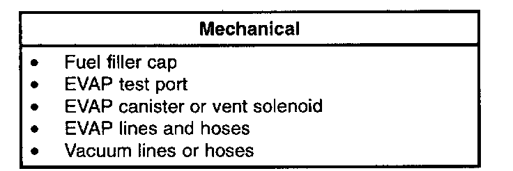 1. Verify the customer concern is with the evaporative emission (EVAP) system.2. Visually inspect for the following obvious signs of mechanical damage.