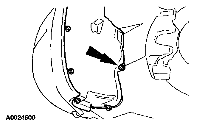 2. Remove the seven pin-type retainers and four screws and position aside the left inner fender splash shield.
