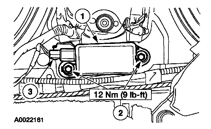 WARNING: Vehicle sensor orientation is critical for proper system operation. If a vehicle equipped with an air bag supplemental restraint system (SRS) is involved in a collision, inspect the sensor mounting bracket and wiring pigtail for deformation. Replace and properly position the sensor or any other damaged supplemental restraint system (SRS) components whether or not the air bag is deployed.