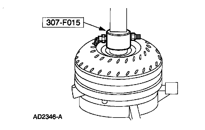 3. Position the torque converter with the installed special tool into an arbor press. Secure press. Apply enough force from press to seal tool into torque converter.