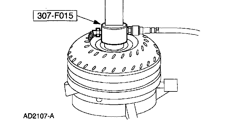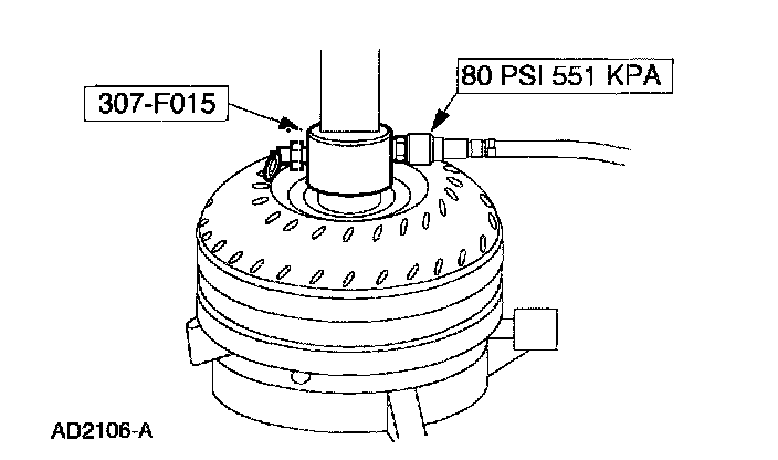 5. With the special tool installed and air pressure applied to valve, inspect for leaks at converter hub seams and studs. A soap bubble solution may be applied around those areas to aid in diagnosis. If leaks are present, install a new converter.