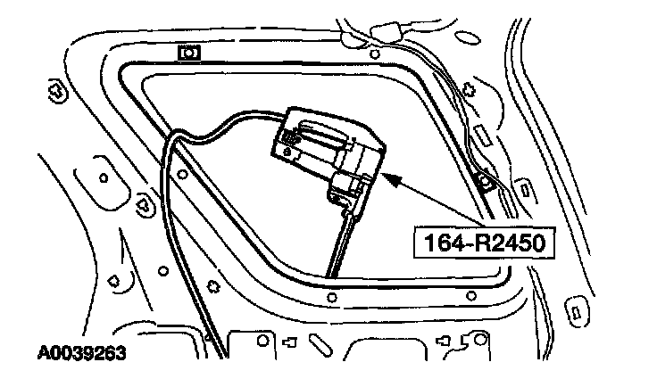 2. Using the special tool, cut the urethane adhesive from the quarter window glass starting at the top center and working toward the bottom corners and remove the rear quarter window glass.