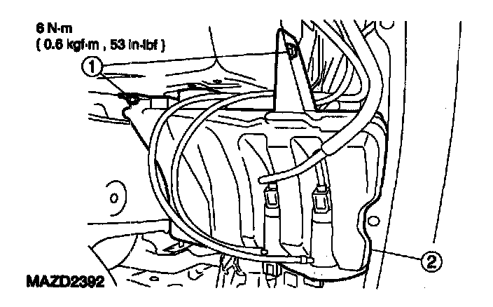NOTE: To prevent spilling windshield washer fluid, drain the windshield washer degas bottle before removal.
