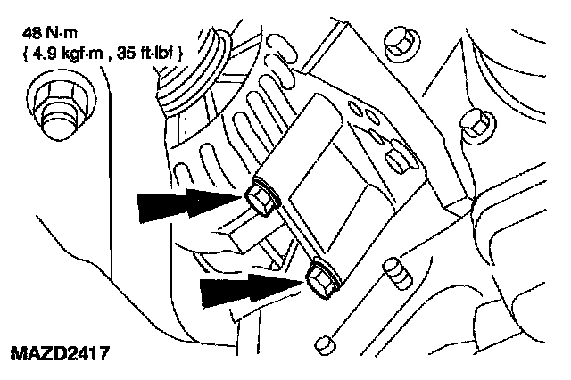 6. Remove the upper generator mounting bolts.