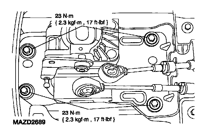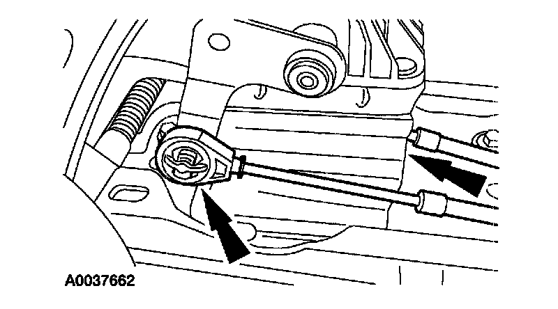 Note: The second shift cable connection is located under the gearshift lever bracket.