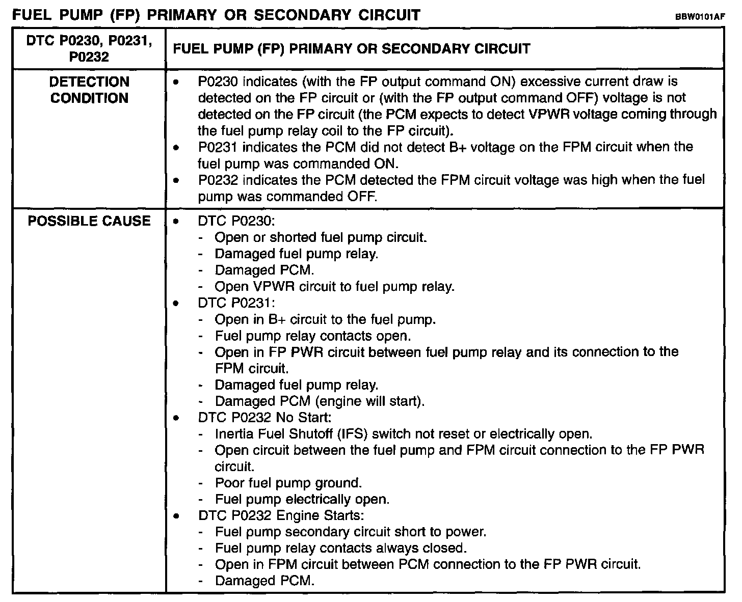 Detection Condition / Possible Cause: