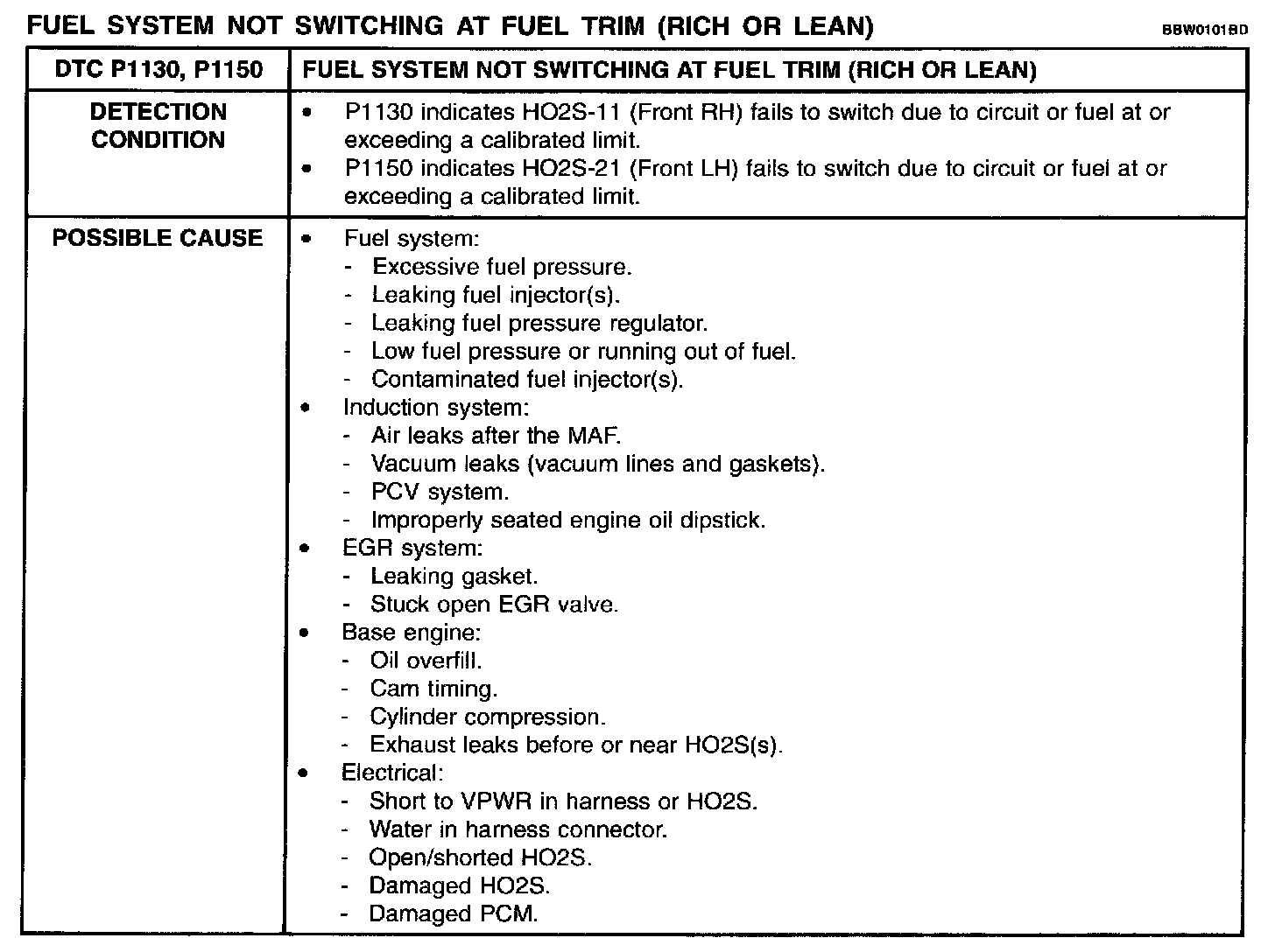 Detection Condition / Possible Cause: