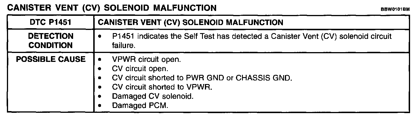 Detection Condition / Possible Cause: