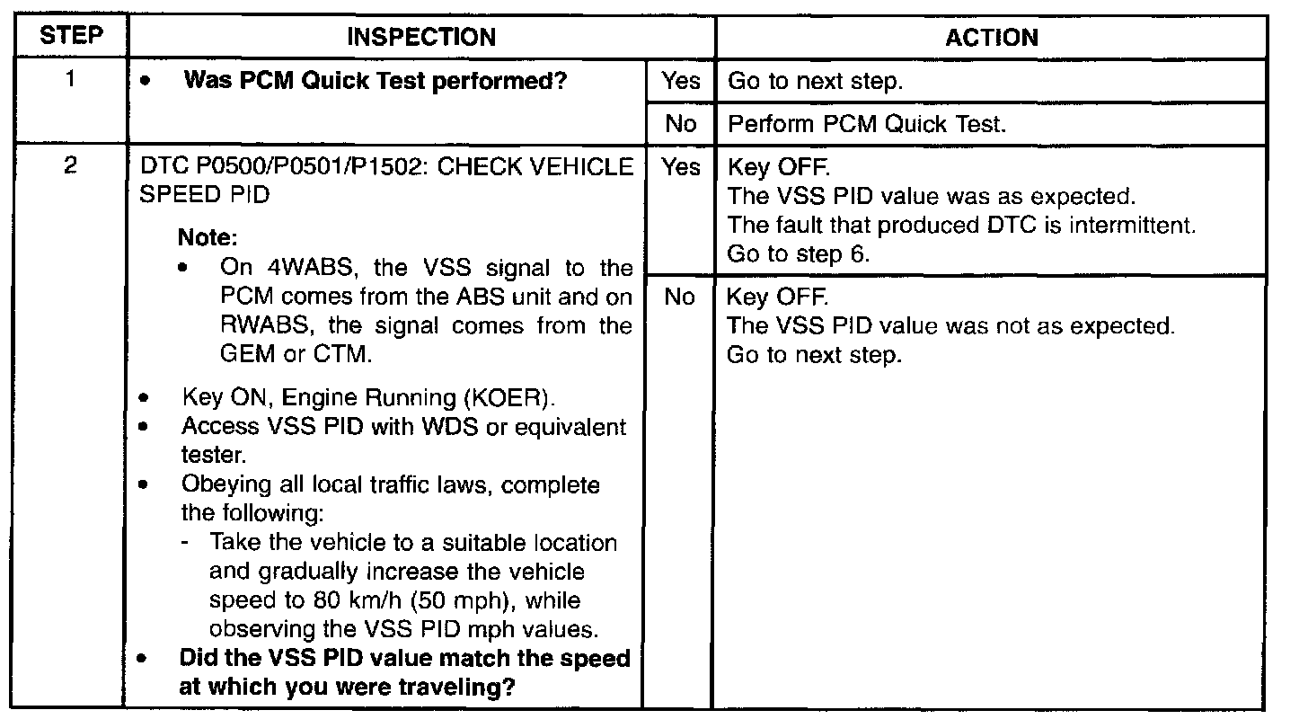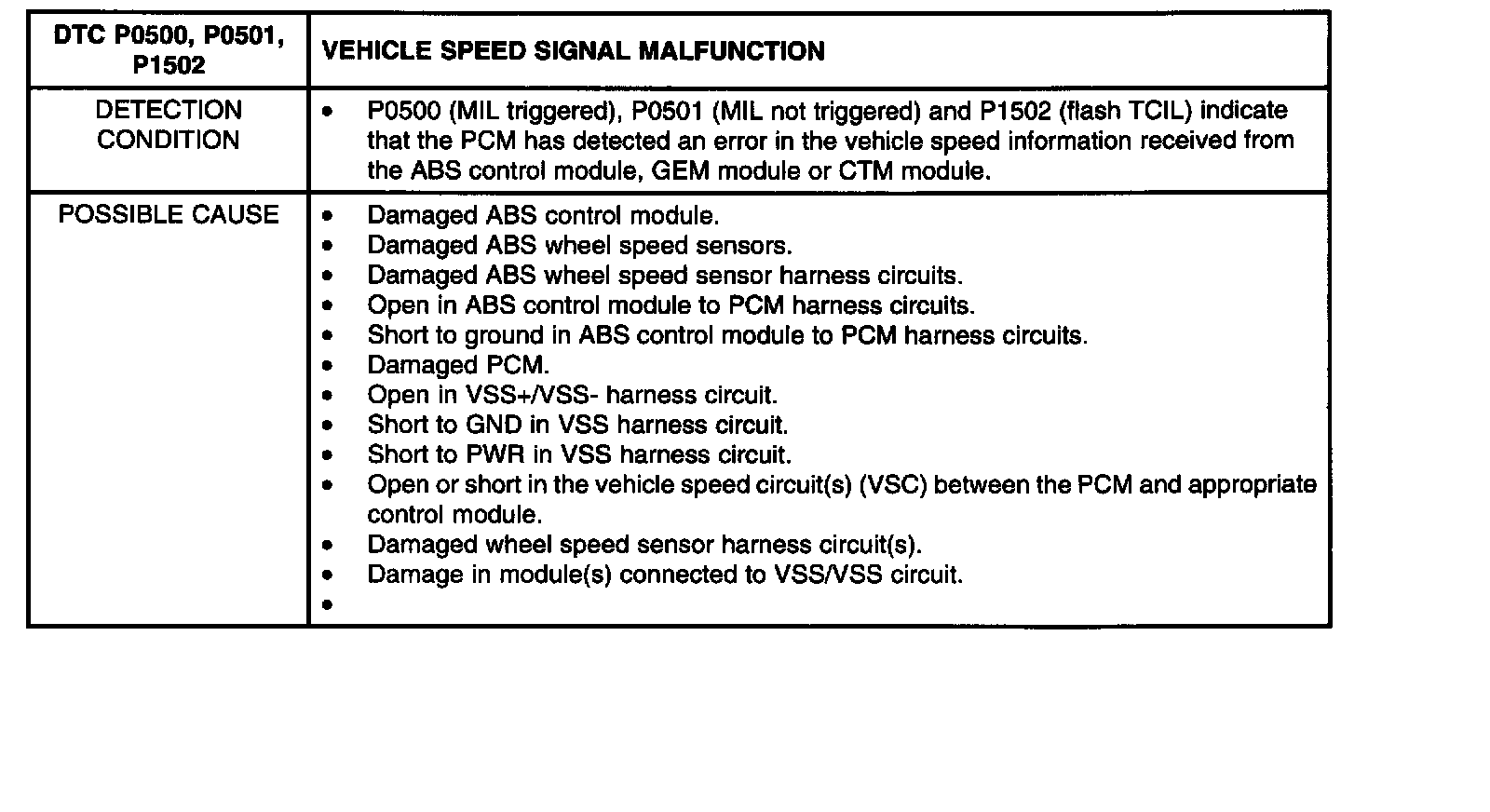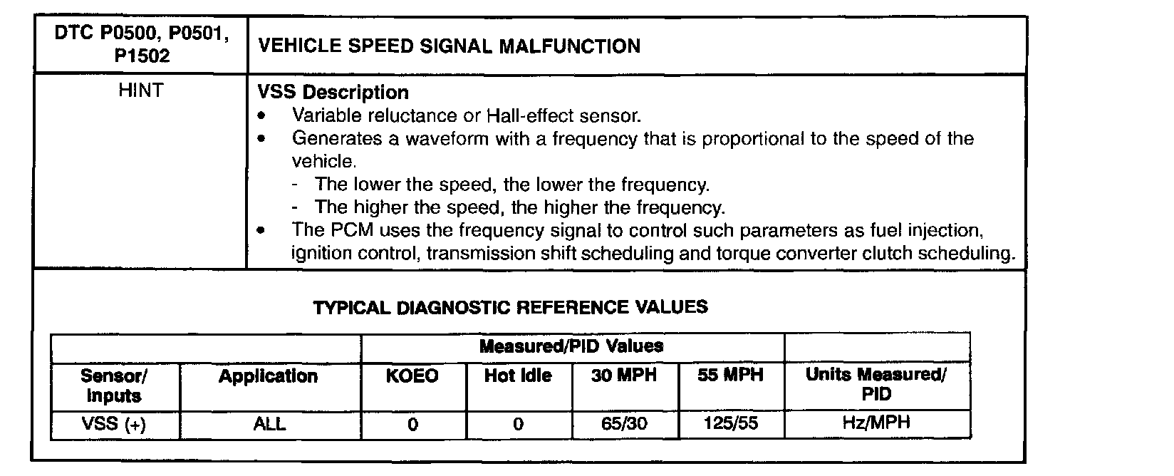 DTC P0500, P0501, P1502 VEHICLE SPEED SIGNAL MALFUNCTION