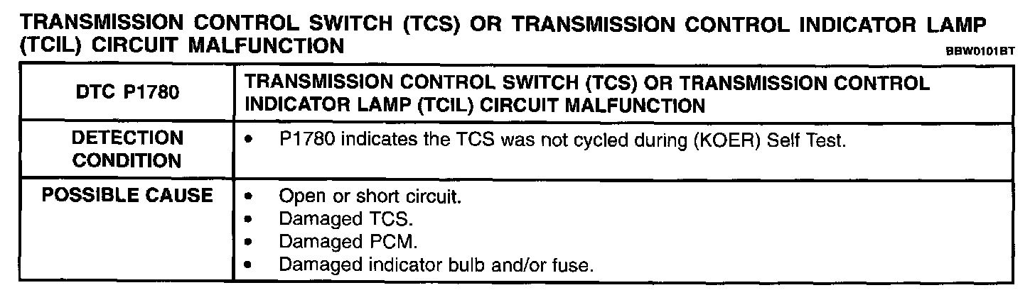 Detection Condition / Possible Cause: